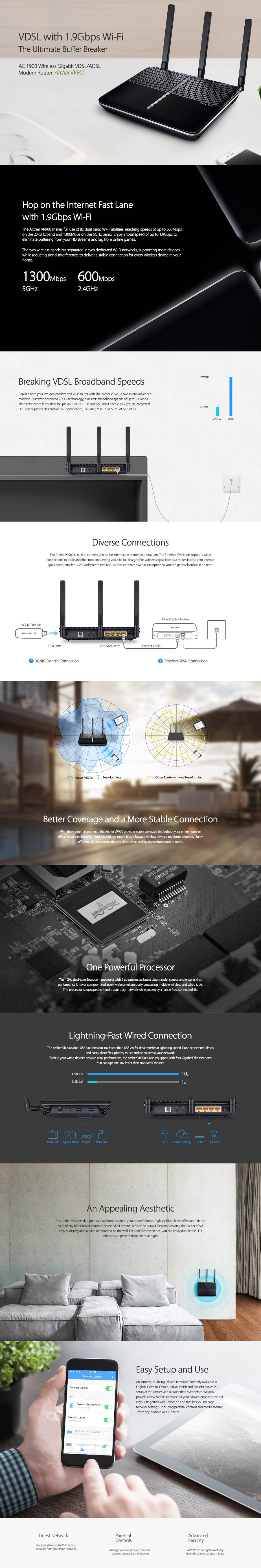 AC1900 Wireless Gigabit VDSL/ADSL Modem RouterArcher VR900
