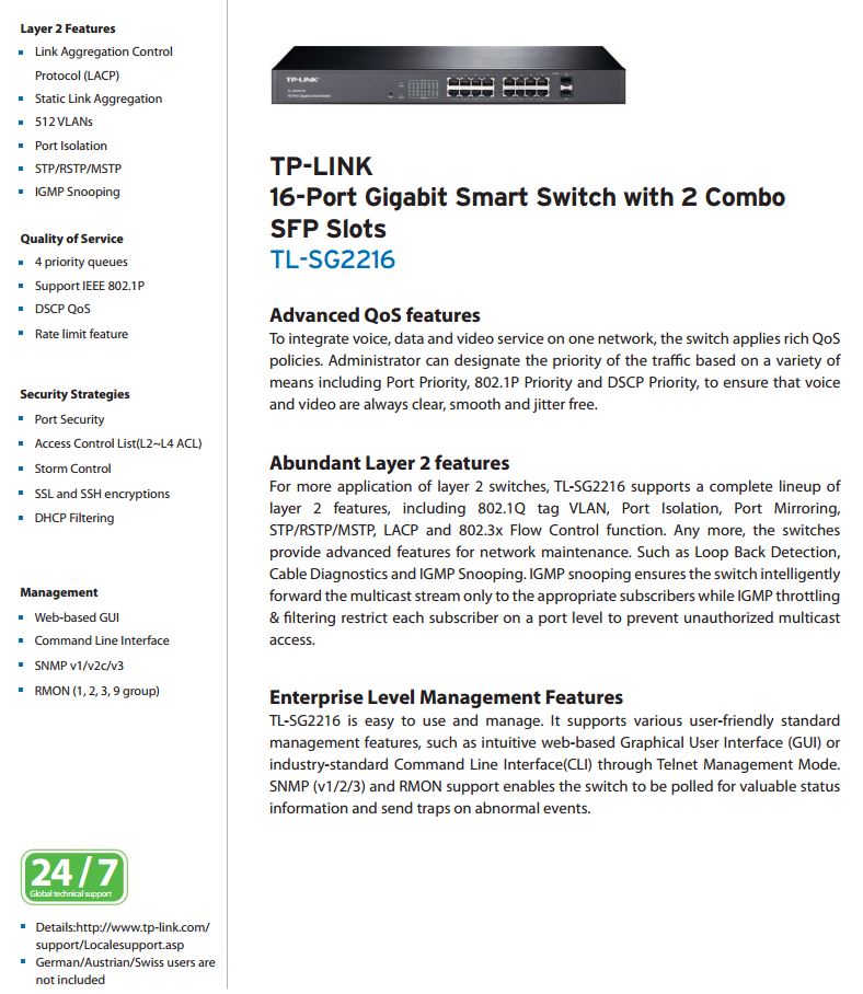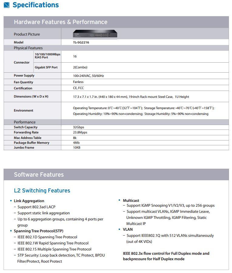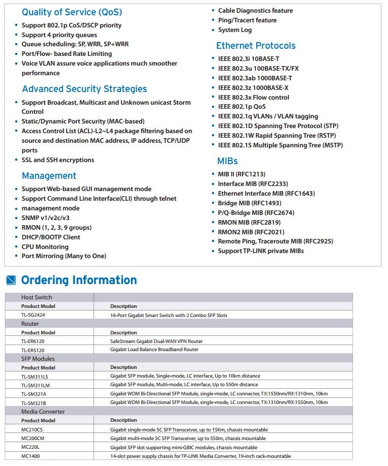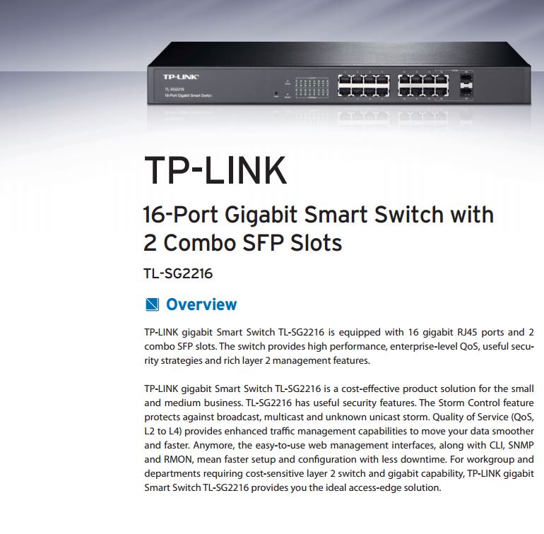 Product Name | TP-LINK T1600G-18TS (TL-SG2216) 16-Port Gigabit Ethernet Smart Switch + 2x SFP |