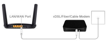 Available WAN Connection With the inclusion of the WAN/LAN port, the TL-MR6400 can also support a wide variety of connection types, including cable, fiber, and DSL modems. |