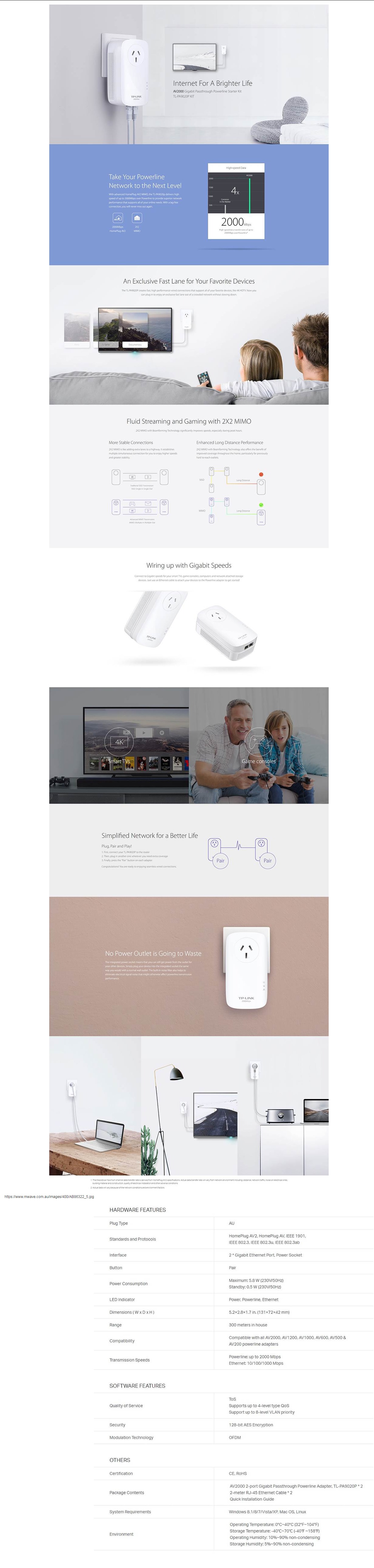 Product Name TP-Link TL-PA9020P KIT 2000Mbps AV2000 2-Port Powerline Adaptor