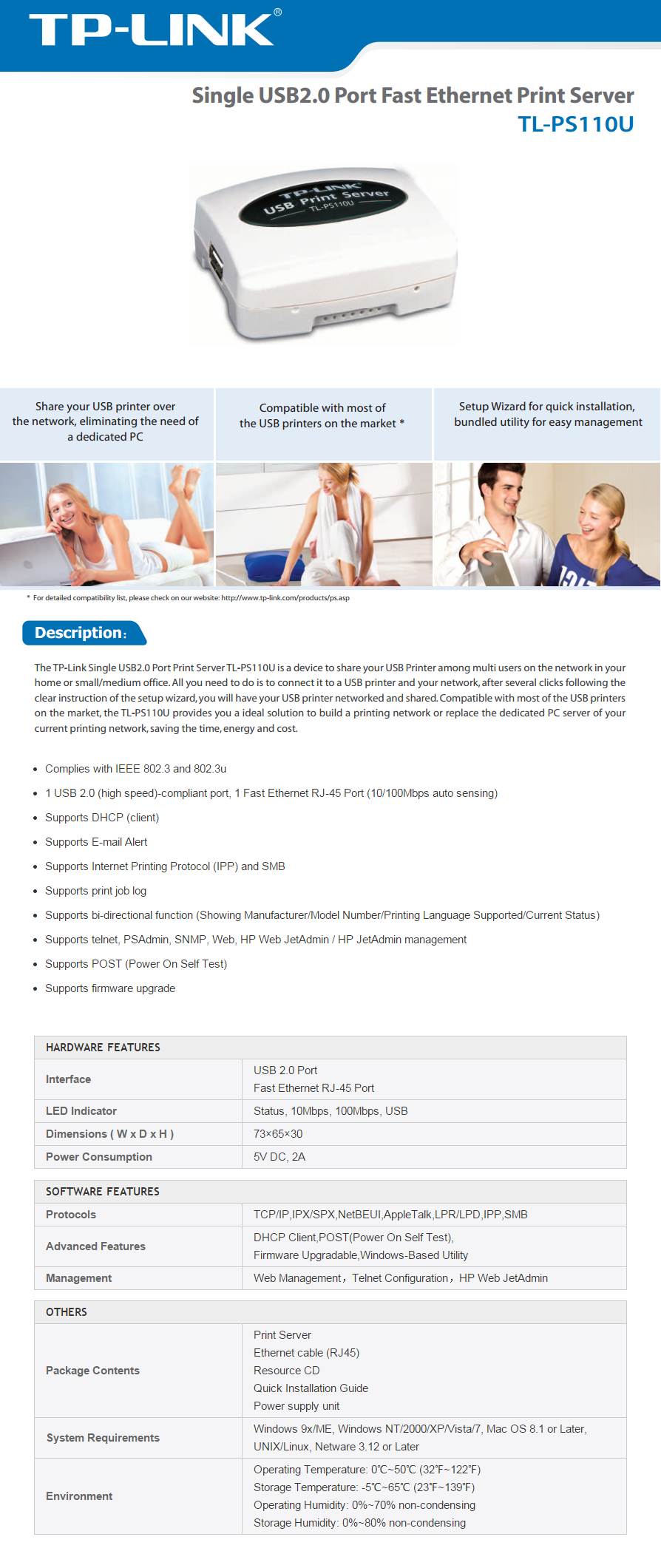 Product Name | TP-Link TL-PS110U Single USB2.0 Port Fast Ethernet Print Server |