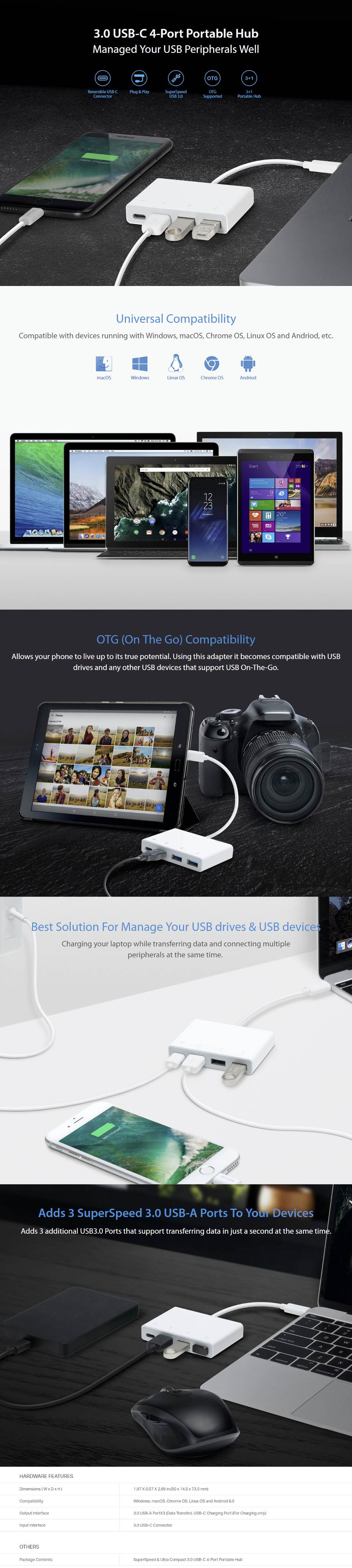 3.0 USB-C 4-Port Portable Hub - Managed Your USB Peripherals Well
