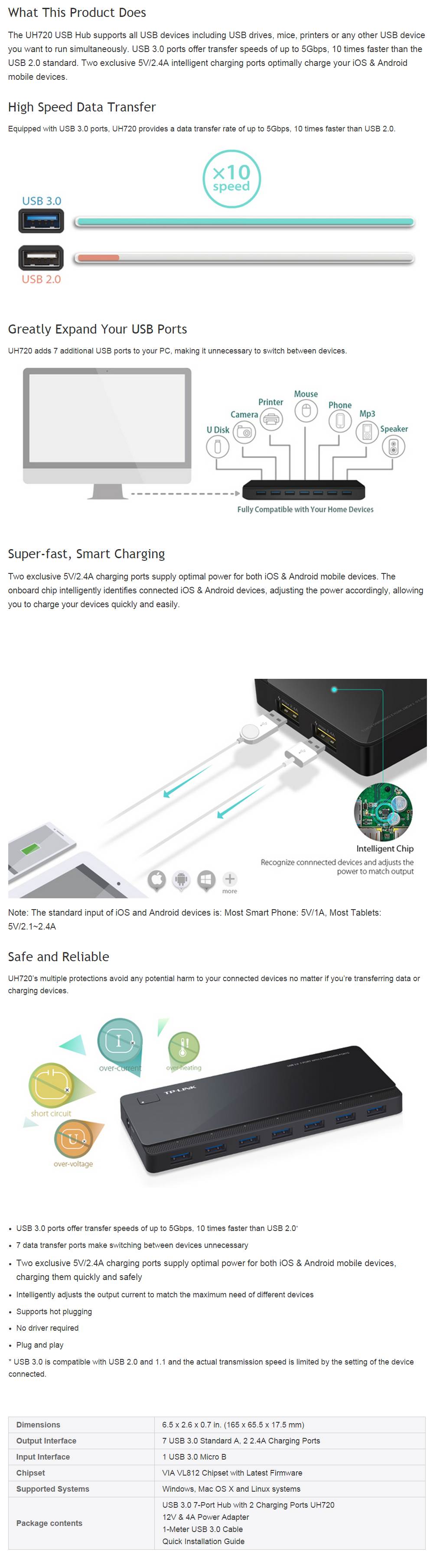 Product Name | Tp-link Uh720 Usb 3.0 7-port Hub With 2 Charging Ports 5v/2.4a |