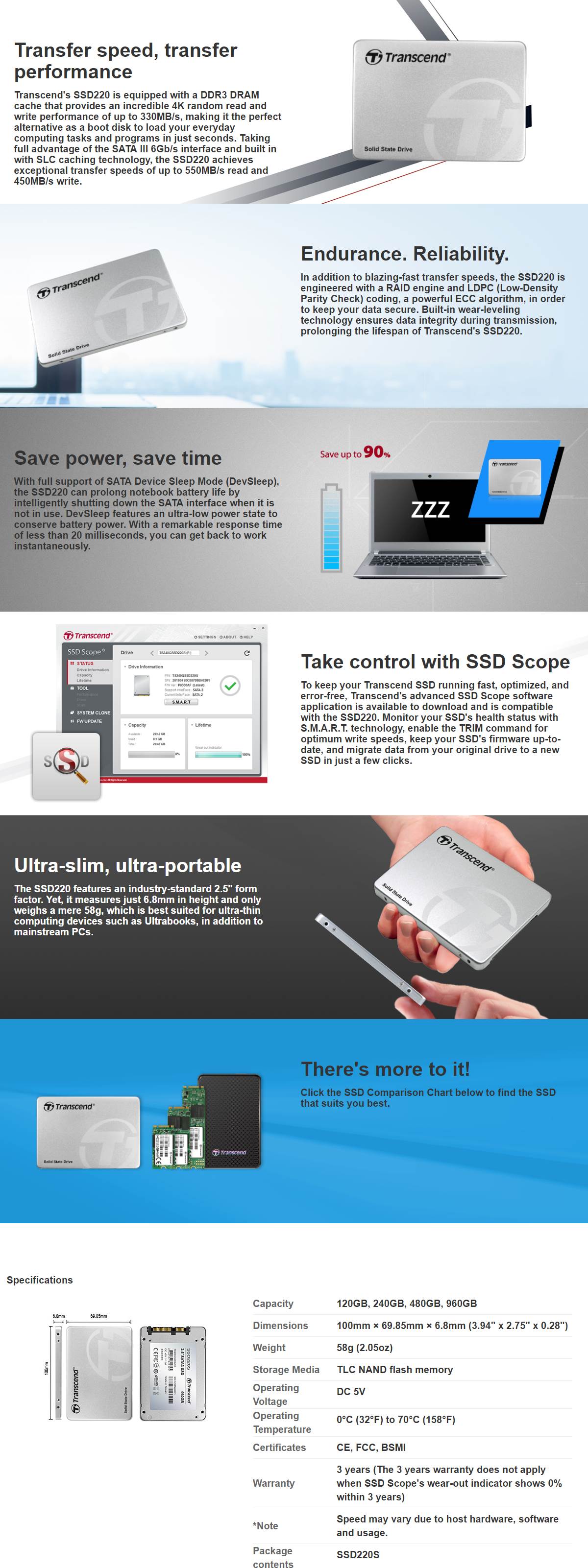 Product Name | Transcend TS480GSSD220S 480GB SATA III 6Gb/s SSD220 |