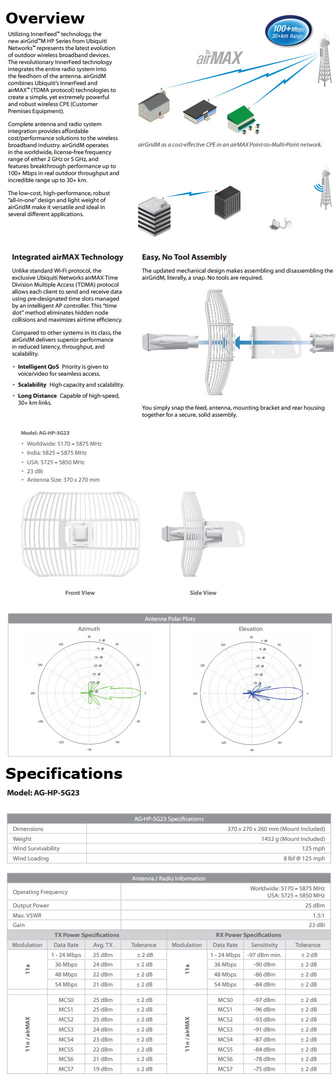 Product Name | Ubiquiti Networks AG-HP-5G23 airGrid M Wireless Broadband Antenna |