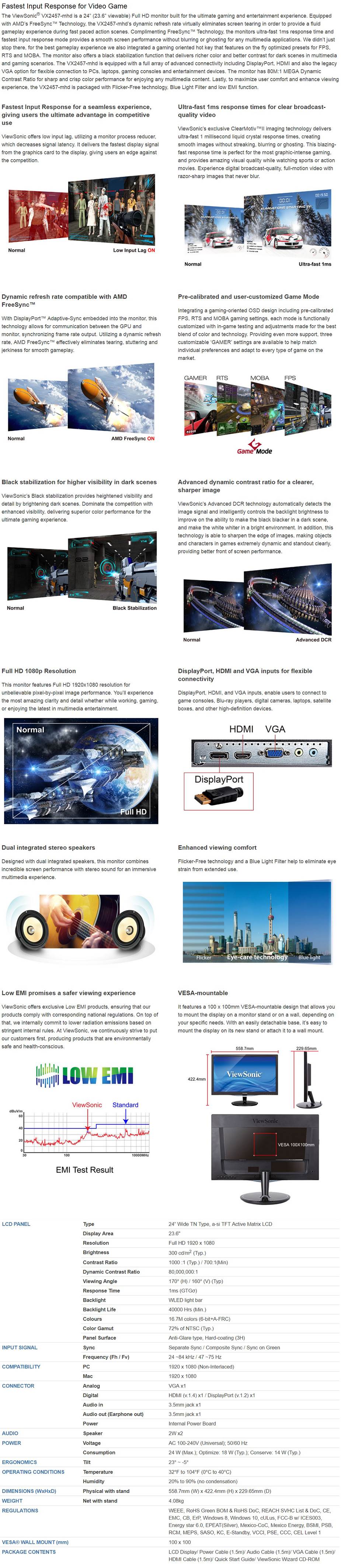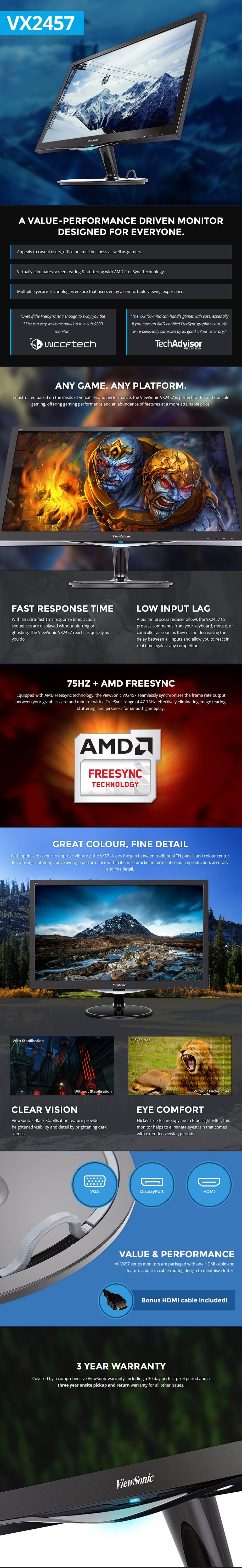 Product Name | Viewsonic VX2457-MHD 23.6" Full HD 75Hz 1ms Freesync LED Gaming Monitor |