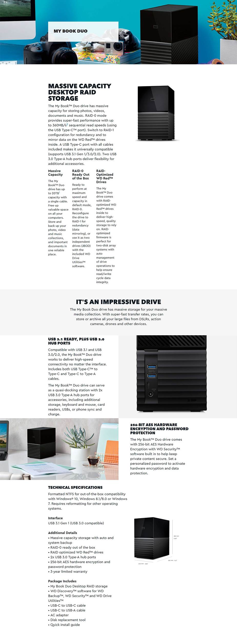 Product Name | WD My Book Duo 2x 6TB Dual-Drive RAID Desktop External Hard Drive WDBFBE0120JBK |